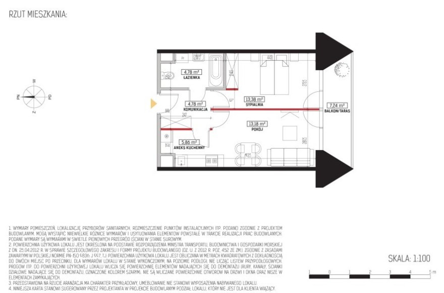 M38 Mieszkanie 2 pokoje z aneksem kuchennym i balkonem