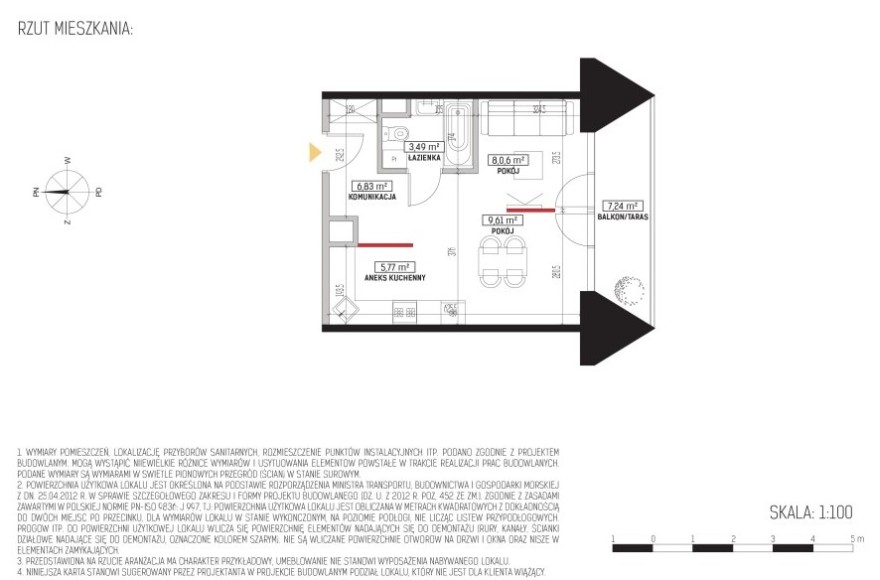 M47 Mieszkanie 2 pokoje z aneksem kuchennym i balkonem