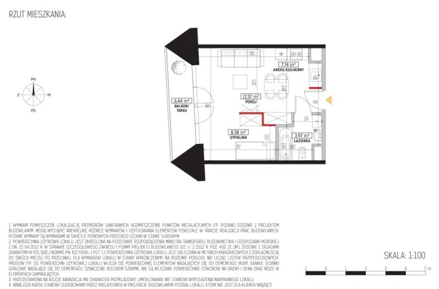M147 Mieszkanie 2 pokoje z aneksem kuchennym i balkonem